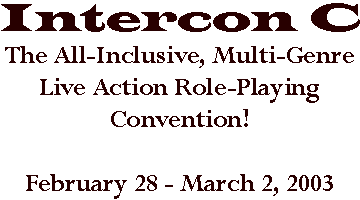 The theme of the sixth Intercon was a tongue-in-cheek look back at the last "century" of LARP. There were more games at the con than in a long time, and more than two hundred LARPers to fill them up. There were games that celebrated all sorts of different styles, and games set in all sorts of different game periods. There was even a great display with a silly chronology of the last hundred years of LARP, poking fun at a lot of the Usual (and Unusual) Suspects.